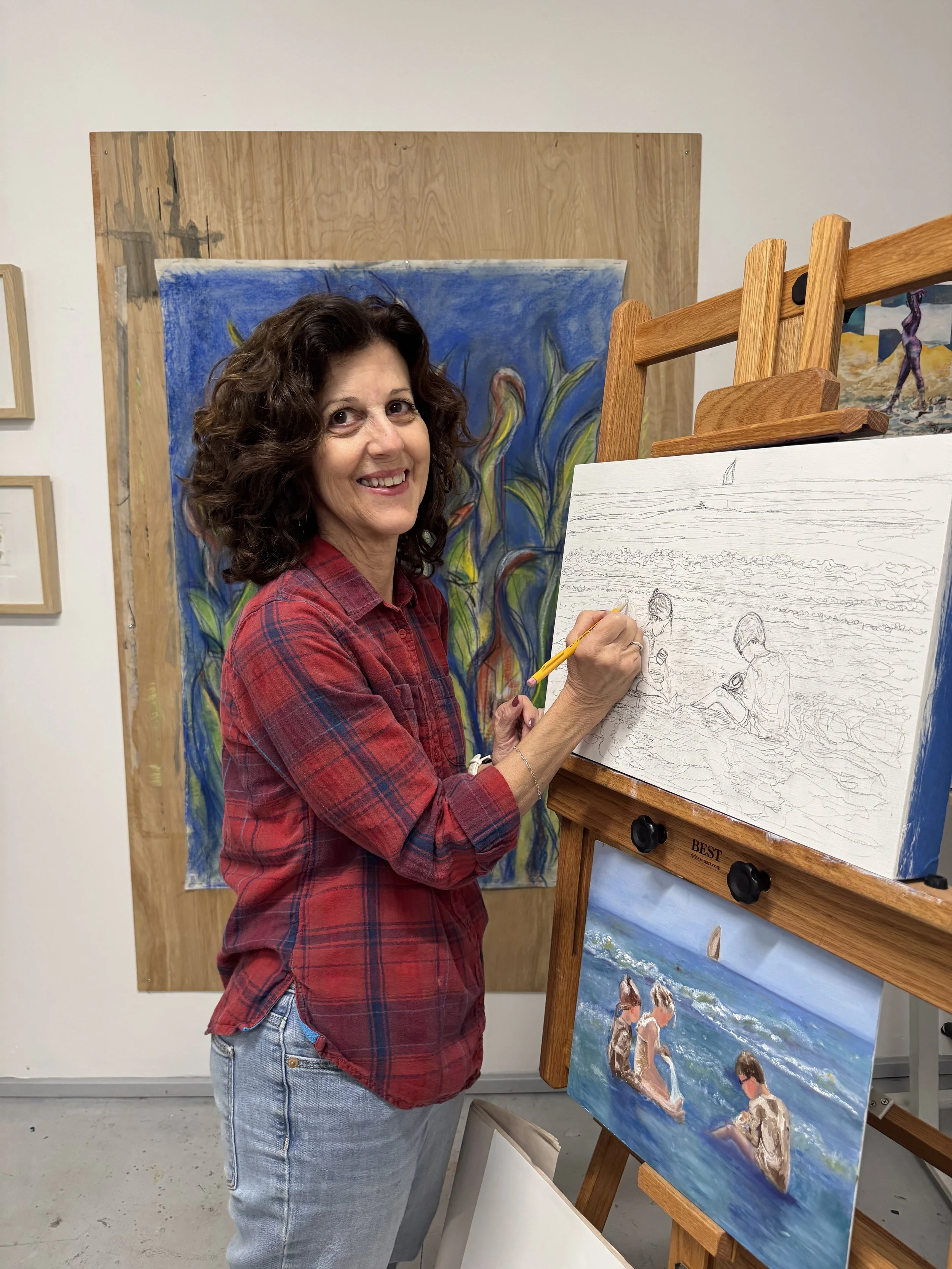 I hire professional models to pose for figure drawing as well as portrait studies. It's important to me to keep my drawing skills up by working from direct observation. My studio is filled with figure studies, portraits, mixed media and oil paintings, as well as pastel studies. I love nature so many of my pieces have found objects installed into the work in tiny boxes. I am not locked into one media and sometimes I like to put my figures into surreal landscapes. I like using color to express emotion and find it exciting to do large drawings and paintings on canvas as well as medium sized oil paintings on panel frames.
