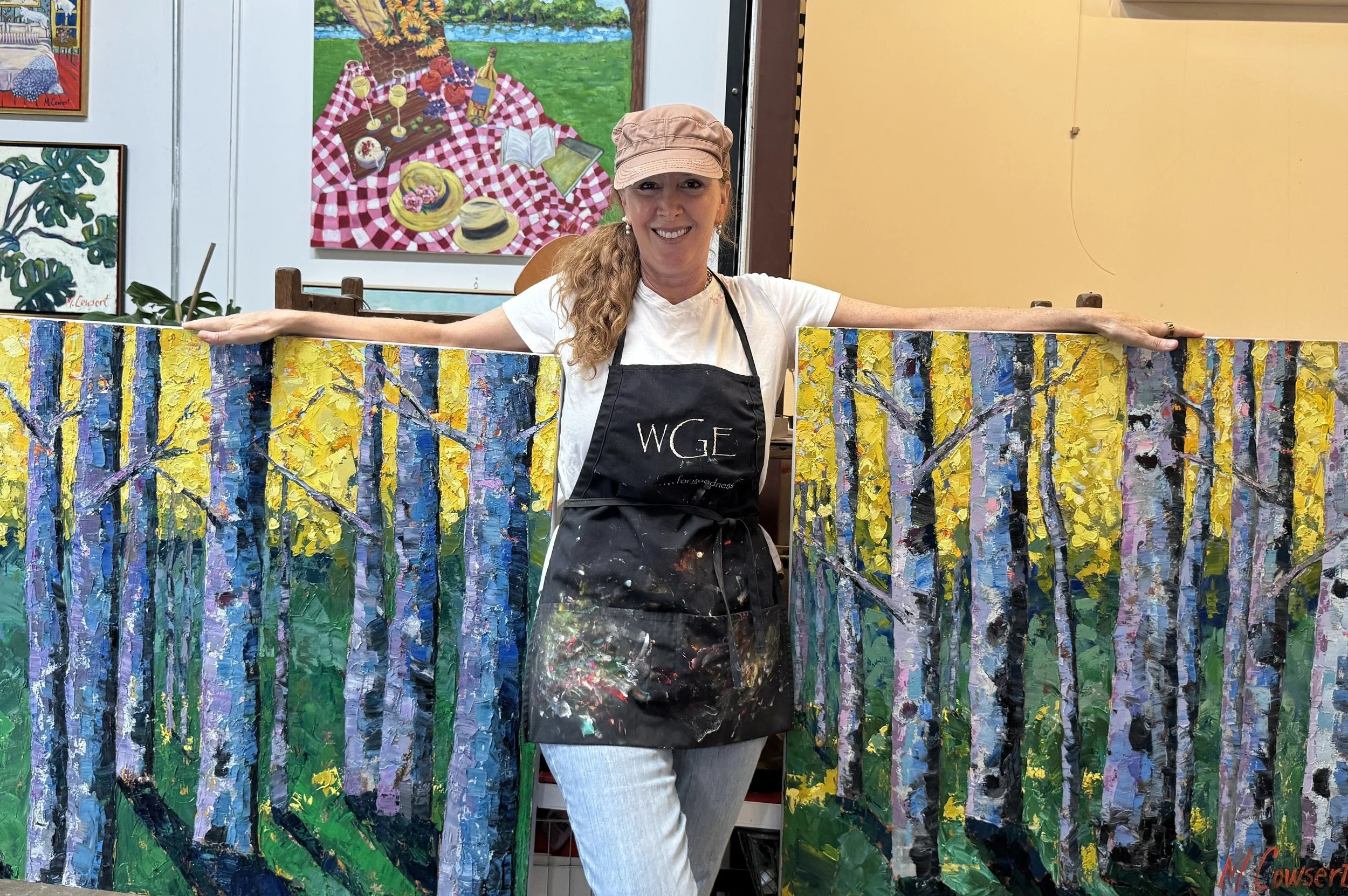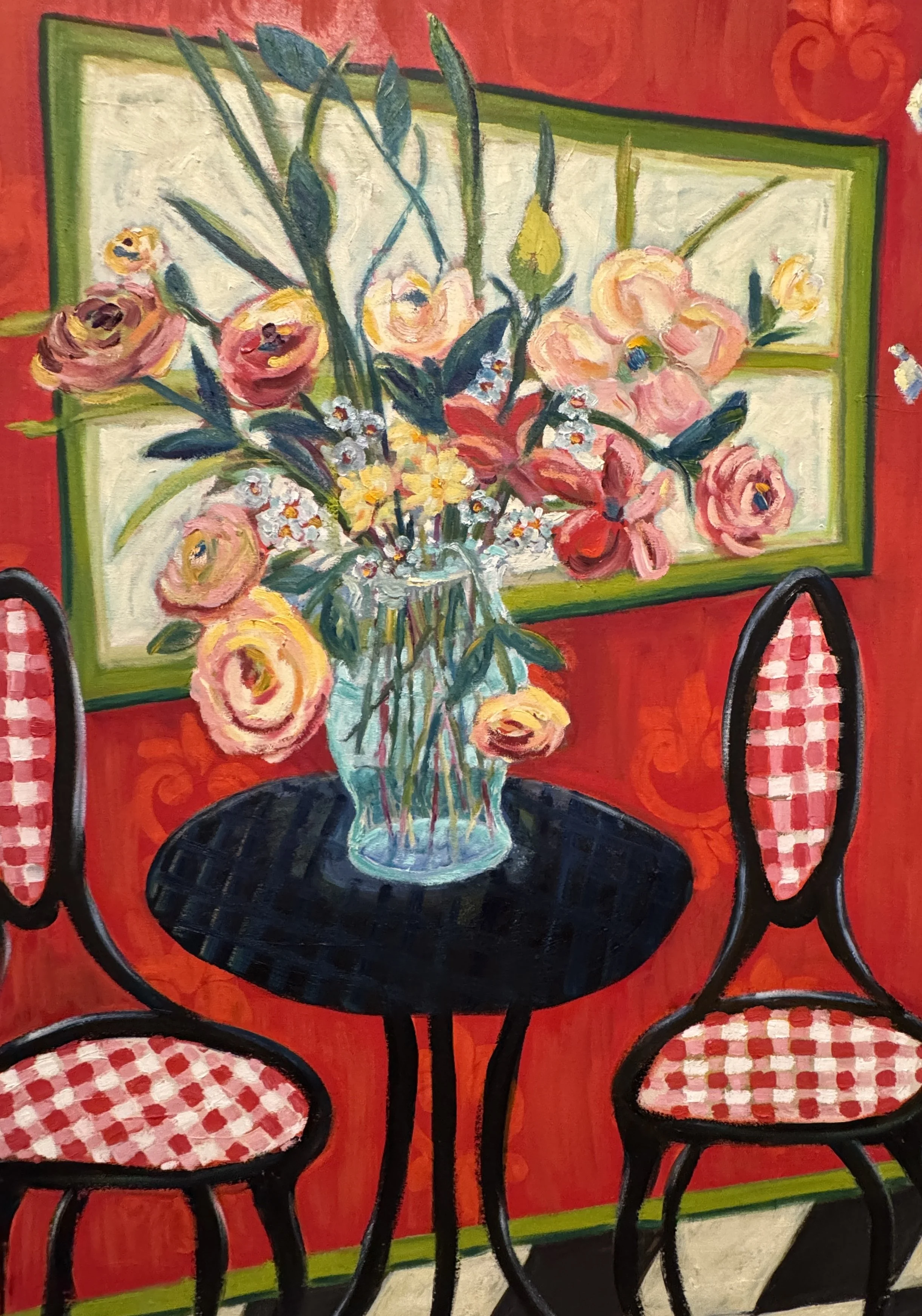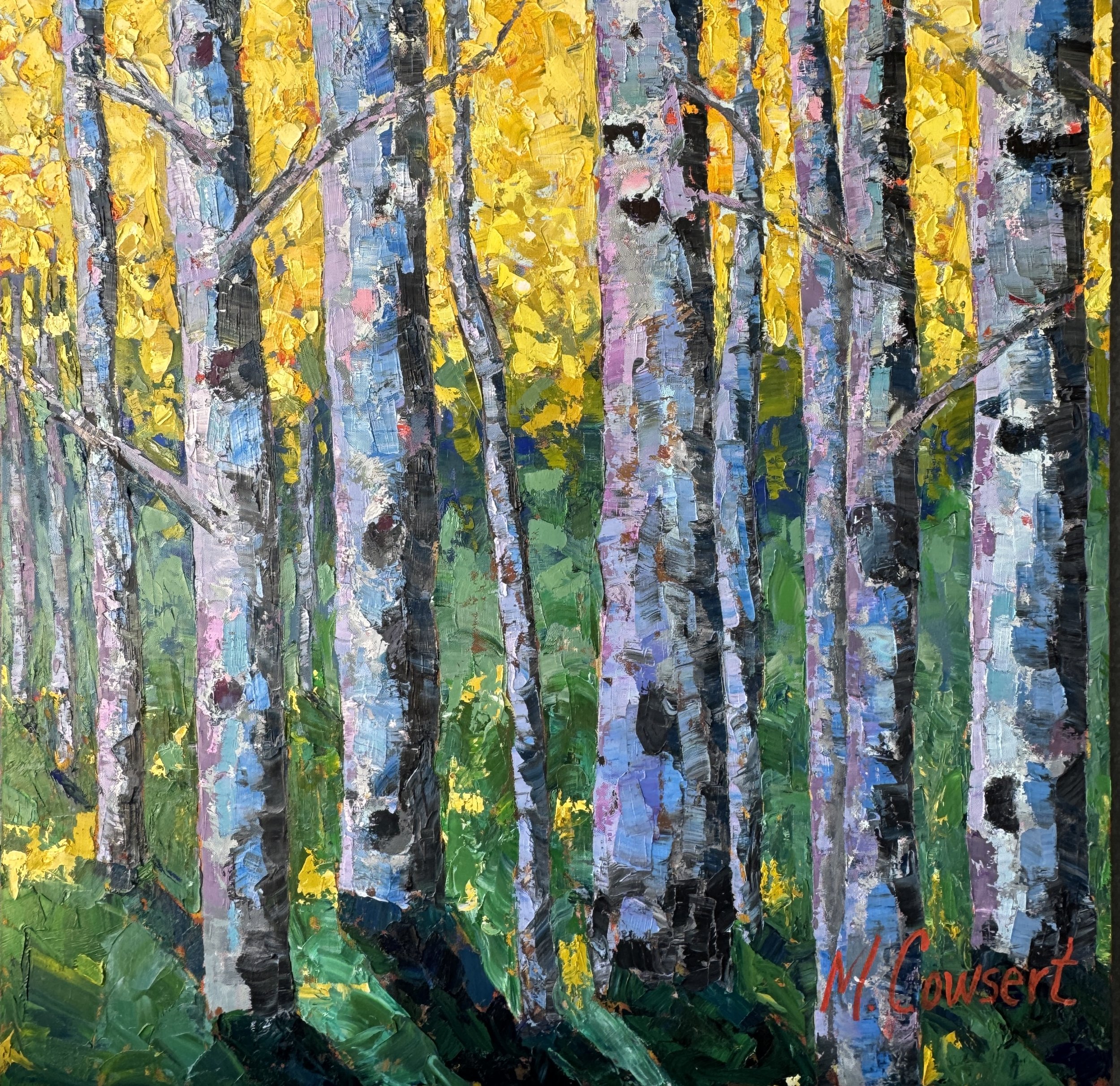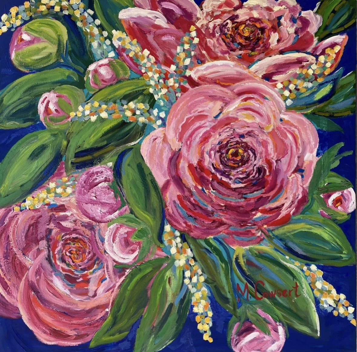 “My subject matter is derived from what I see and feel. Like life however, it is layered, at times completely unorganized, and changes during the process many times. For me personally the painting process has been healing and joyful. Through my artwork, I try to bring the outside in, and while I make no attempt to portray my subjects in an exact likeness, I do try to aesthetically honor the nature that has inspired me in the first place.”